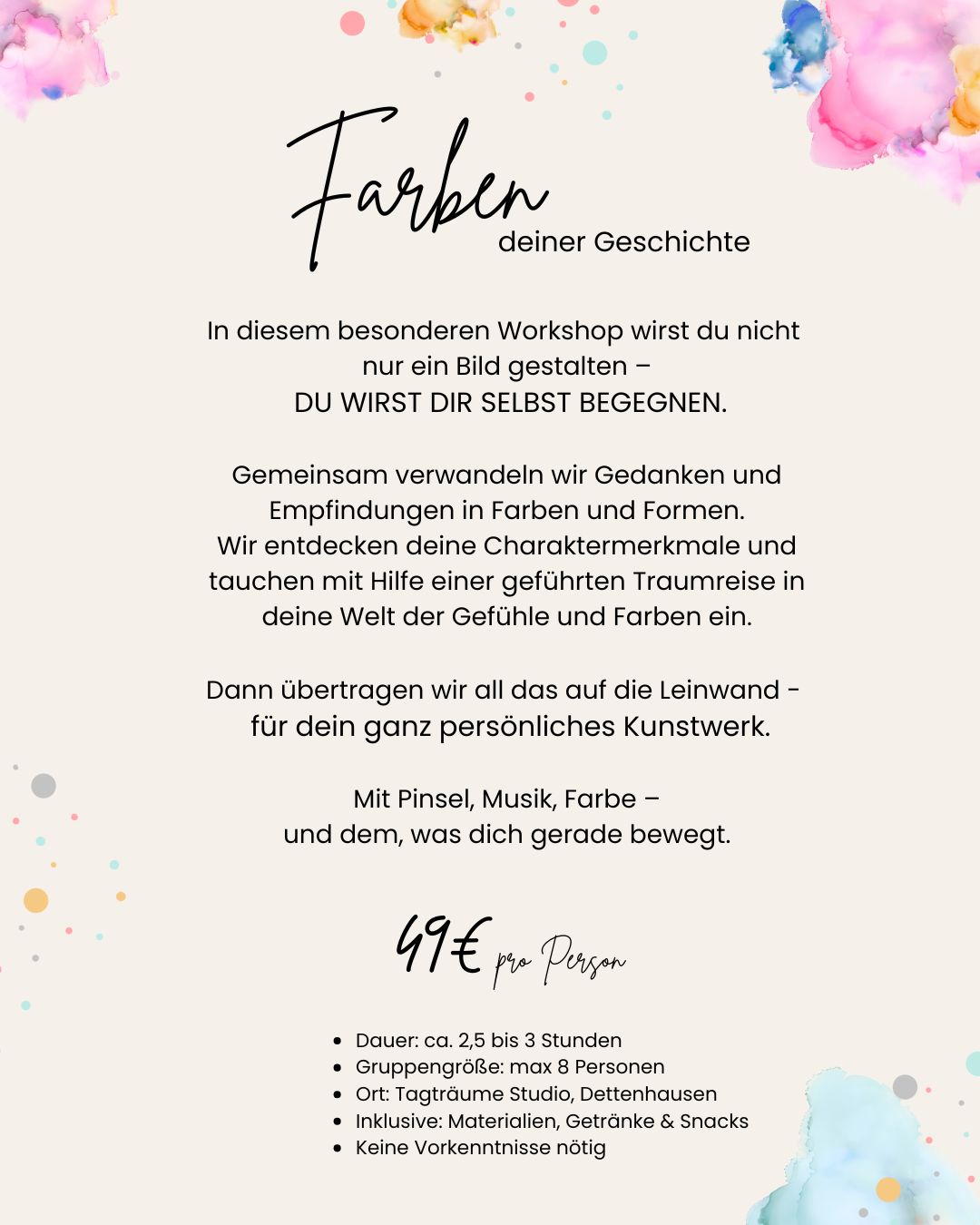 • Inklusive: Materialien, Farbkarten, Snacks & Getränke