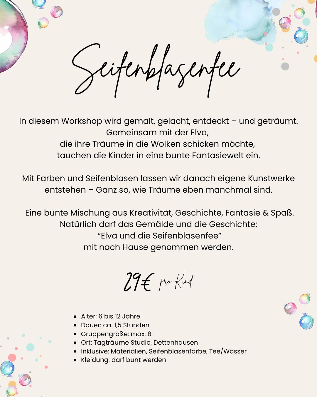 • Inklusive: Materialien, Seifenblasenfarbe, Tee/Wasser